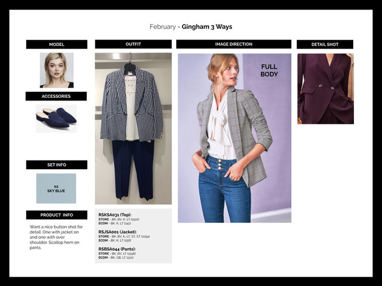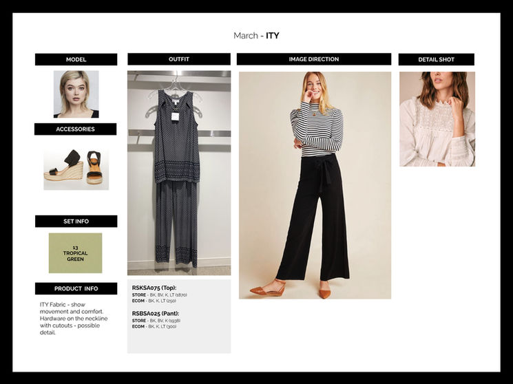 The Rafaella Spring 2020 Campaign shoot was planned as a catch all for two purposes. First, to provide imagery for marketing purposes on social media and for use in campaigns. The second, to update in store signage and streamline fit guide signage. Being a two day shoot, it was challenging to capture the number of images needed and various messages, but thanks to a talented crew and star model, we exceeded the number of images captured and added additional looks on set. We were able to deliver the seasonal photoshoot at a 61% cost decrease to seasons prior.
